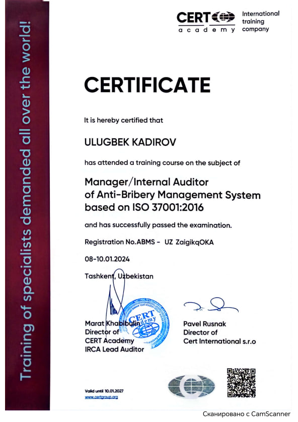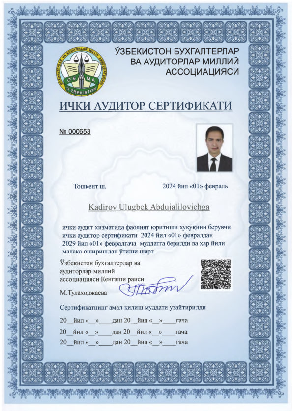 Улугбек Кадиров специализируется на форензик-аудите (финансовых расследованиях), финансовом аудите и консультациях в сфере корпоративного управления и внутреннего контроля.
